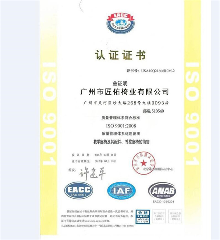 1、 椅座:采用多層優質旋切木皮經模具熱壓成型,板面壓防火板,四周PVC封邊,防潮、耐用;厚度不小于16mm;表明用海綿包裹,座板與角碼采用穿透方式連接,椅座板面配特別訂制不銹鋼螺套與椅面完美結合。
